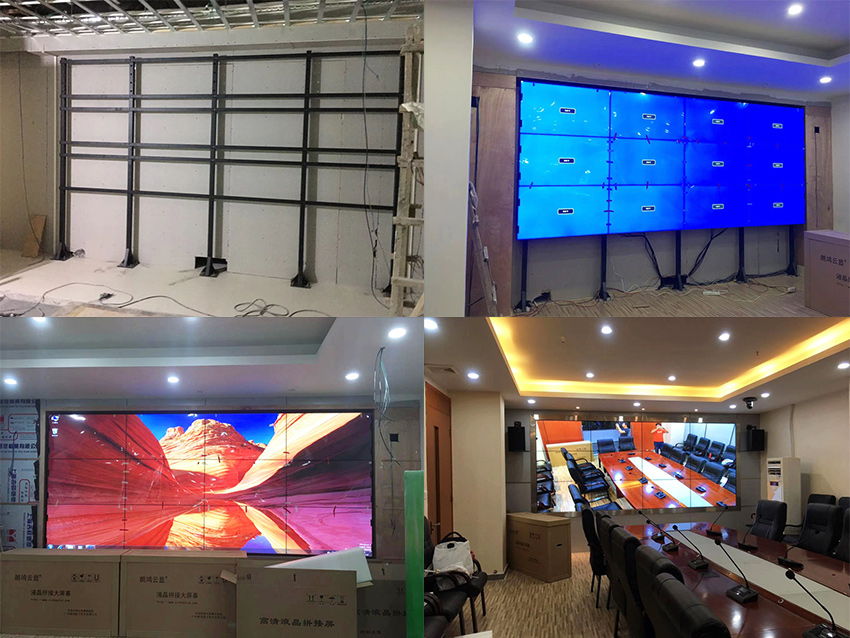 此次項(xiàng)目,采用信弘超窄邊3.5mm拼縫,46寸液晶拼接屏,落地式支架安裝,打造一套4×3拼接的大屏智能會(huì)議系統(tǒng)。