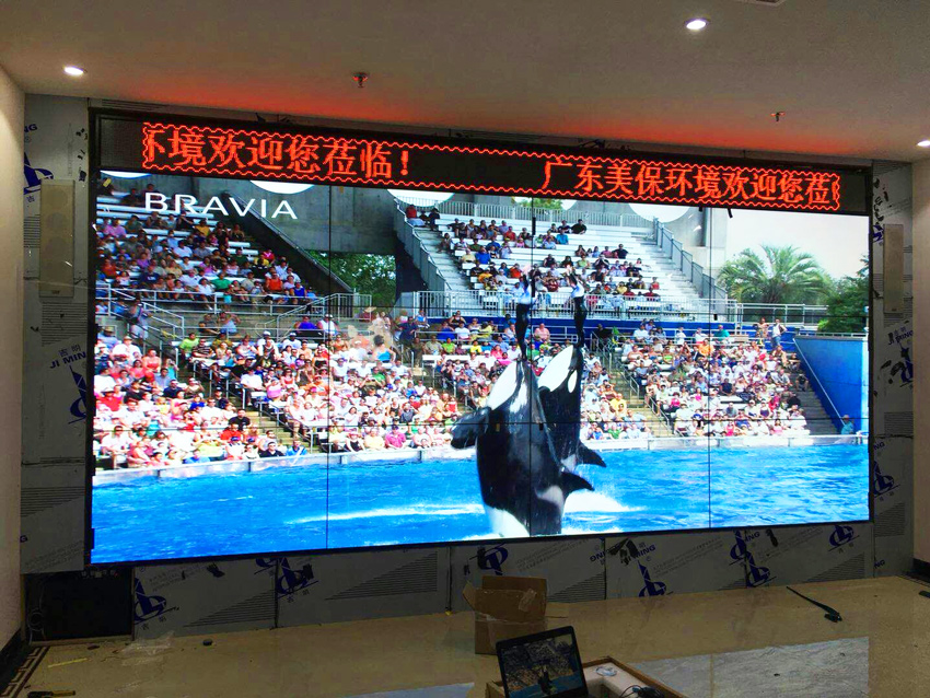 信弘根據(jù)美保公司的需求,推出具有高清、輕薄、低維護成本、長壽命、低功耗等優(yōu)勢的大屏方案。為其量身定制一套55寸(S55-XHL2ME)3.5mm拼縫,3×4“液晶拼接大屏”,采用前維護安裝,加LED條屏顯示,用來管理環(huán)衛(wèi)工人,滿足遠程監(jiān)控、互聯(lián)互通的服務(wù)需求。目前,項目已經(jīng)施工完成,并交付客戶驗收投入使用。