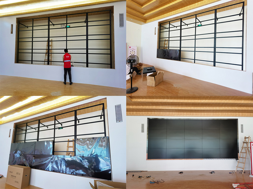 此次,采用的是信弘3.5mm拼縫,總計20塊55寸的超清顯示液晶拼接屏,安裝方式為落地支架安裝。